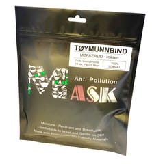 Munnbindet er laget av 100% bomull. Det medfølger 1 stk. munnbind per pakke samt 10 stk. karbonfilter. Totalt består munnbindet av 4 lag med bomull, mens karbonfilterne har 5 lag. Dette gjør munndbindet med karbonfilteret har tilsammen 9 lag med filter. Produktet er av meget god kvalitet - og oppfyller både krav, og retningslinjer som er satt innenfor bruk av munnbind. Munnbindet er laget av 100% bomull. Det medfølger 1 stk. munnbind per pakke samt 10 stk. karbonfilter. Totalt består munnbindet av 4 lag med bomull, mens karbonfilterne har 5 lag. Dette gjør munndbindet med karbonfilteret har tilsammen 9 lag med filter. Produktet er av meget god kvalitet - og oppfyller både krav, og retningslinjer som er satt innenfor bruk av munnbind. - Munnbindene er ikke medisinske, og er kun til privat bruk der hvor sosial distansering ikke er mulig. Skal ikke erstatte medisinsk (kirurgisk) munnbind, der hvor det er påkrevd eller anbefalt med denne typen munnbind. - Vask eller desinfiser hendene før munnbindet tas på, justeres, under bruk eller tas av ansiktet. - Håndvaskes med såpe og varmt vann, eller i vaskepose på 60 grader. - Filteret byttes etter 3-5 dagers bruk, eller ved vask av munnbindet. - Oppstår det skader på munnbindet skal det ikke benyttes lenger. - Blir munnbindet eller filteret fuktig/vått - vask munnbindet og bytt filter før videre bruk. - Oppbevares i den solide og praktiske lukkeposen som medfølger. - Skal ikke brukes av barn under 3 år.
